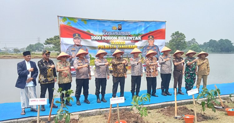 TANGERANG - Polresta Tangerang Polda Banten melaksanakan kegiatan groundbreaking atau peletakan batu pertama pembangunan Jembatan Merah Putih Presisi, Kampung Ilat RT 02/03, Desa Pangadegan, Kecamatan Pasar Kemis, Selasa (21/4/2026). Kegiatan tersebut dirangkaikan dengan penanaman 1.000 pohon, yang ditanam